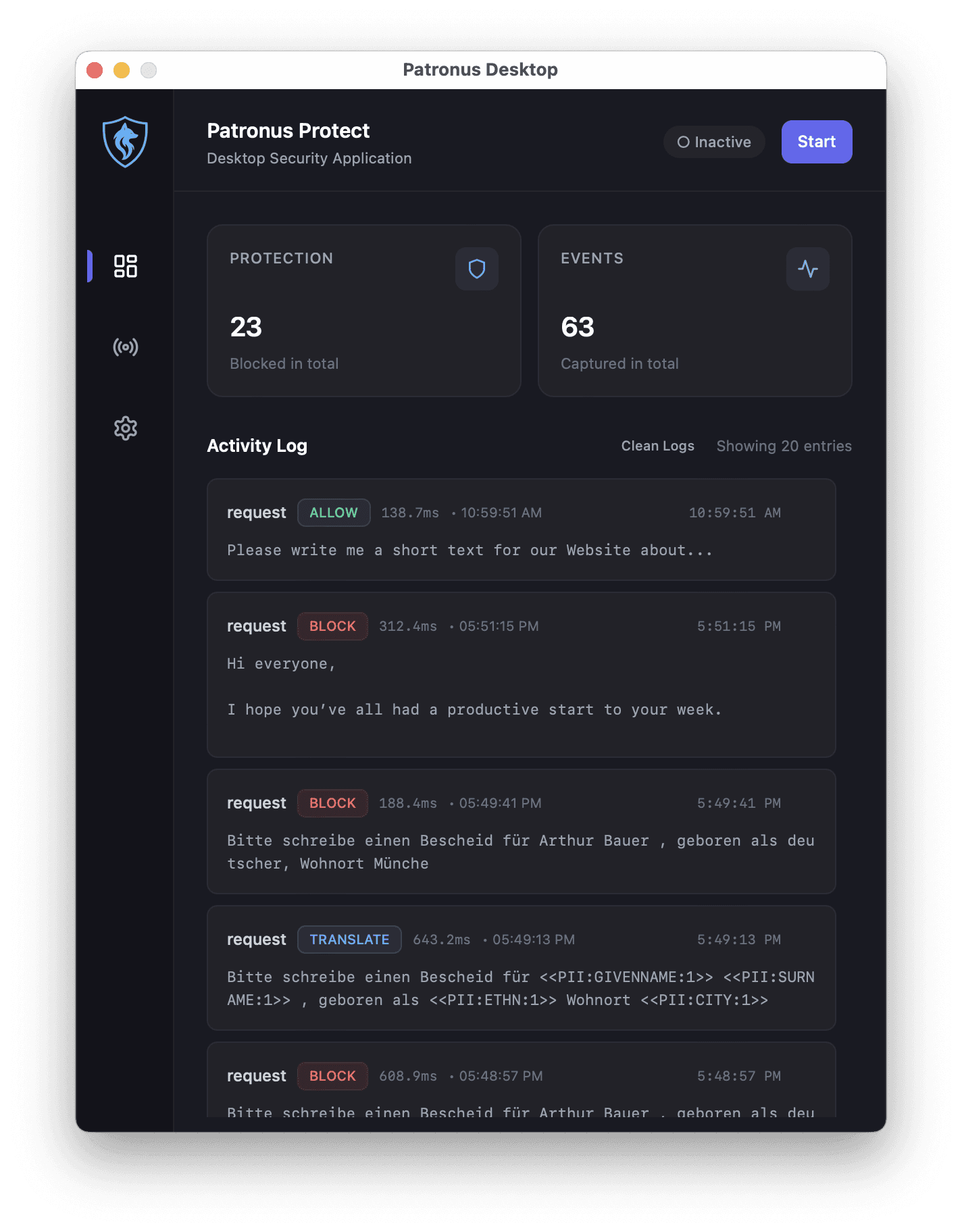 Note: Patronus Protect is currently in early development. Some features shown represent planned capabilities on our roadmap: